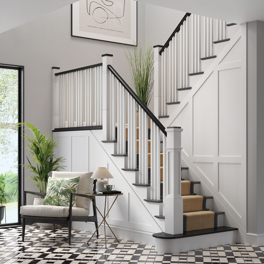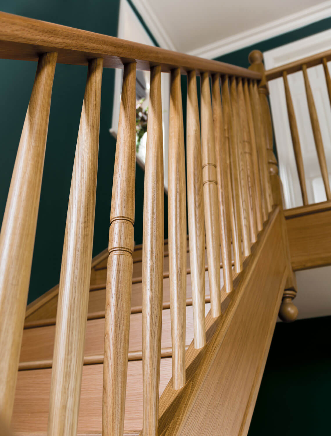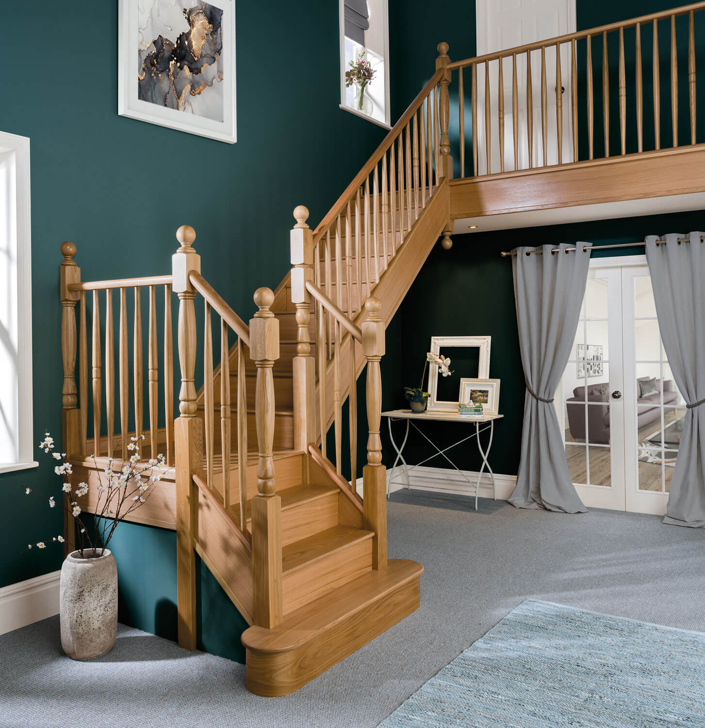 This beautiful traditional wooden staircase is a fine example of the time-honoured craftsmanship that goes into each staircase design. Featuring a combination of our Amber and Tay spindles finished in Natural Oak, this classic staircase is exclusive to Neville Johnson. Add a timeless statement to the heart of your home with a fabulous oak staircase renovation.