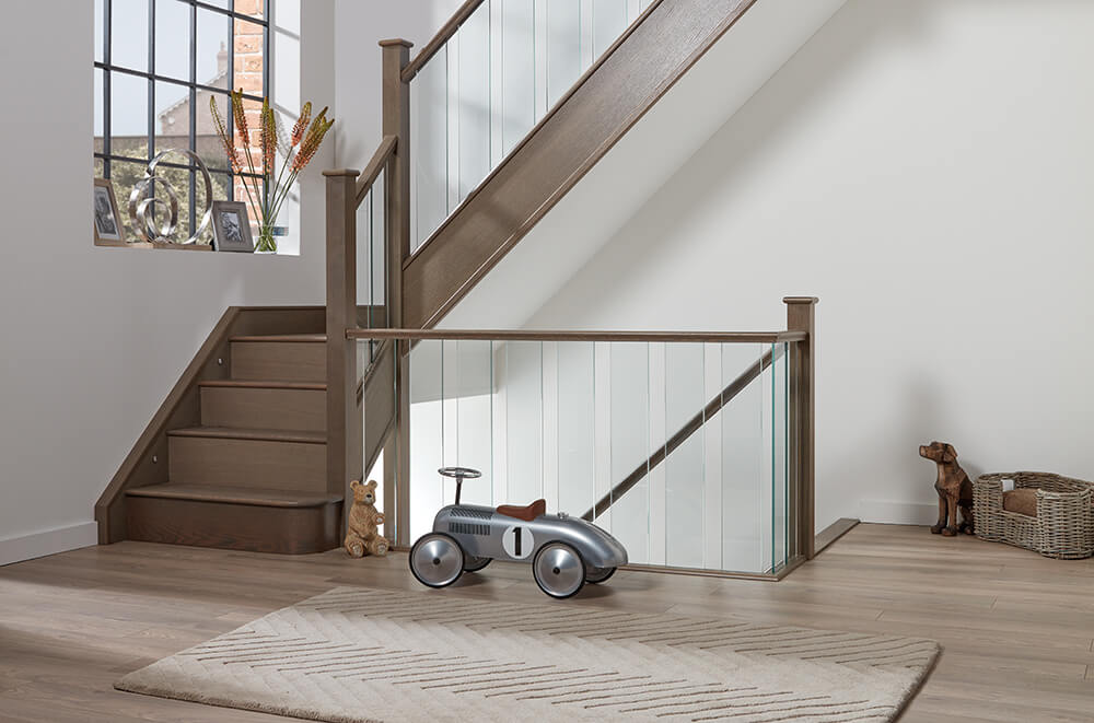 Dusted Oak Staircase with Glass Spindles