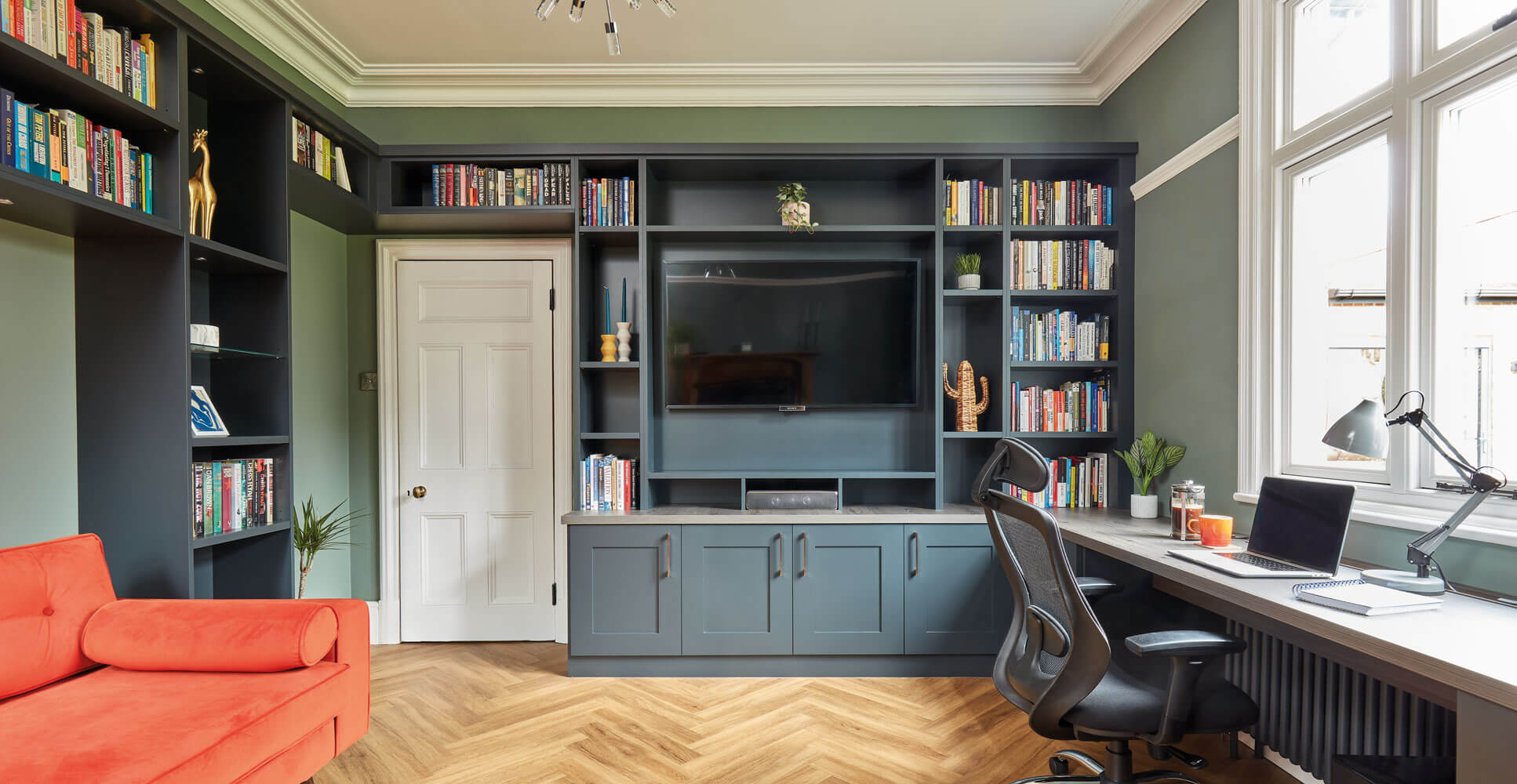 Home Office by day, stress-free sanctuary by night; our client asked for a study with a multifunctional purpose and Jen has delivered in true Neville Johnson style.