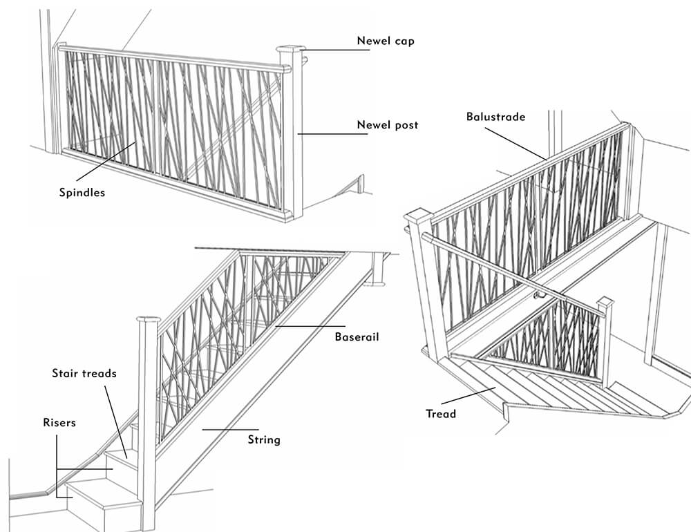 Staircases have a number of components that you may not think about or even consider. So before you invite anyone to take a look at your staircase, here is a glossary of terms that will help you to identify the elements that can be transformed.